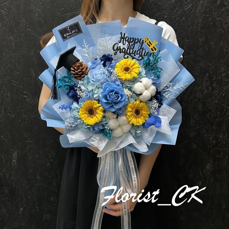 Timeless 天藍花紙 |畢業之選|永生玫瑰太陽花花束 (預訂款)