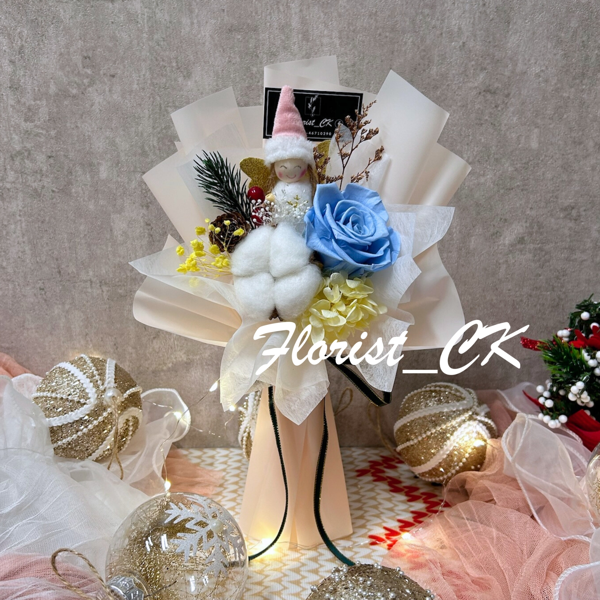 這款聖誕限定永生玫瑰公仔花束以夢幻設計展現節日的溫馨氣息,象徵長久關懷與純粹喜悅。永生玫瑰綻放不凋的浪漫,配上可愛公仔點綴童話般祝福,為節日增添幸福驚喜與溫暖光彩。