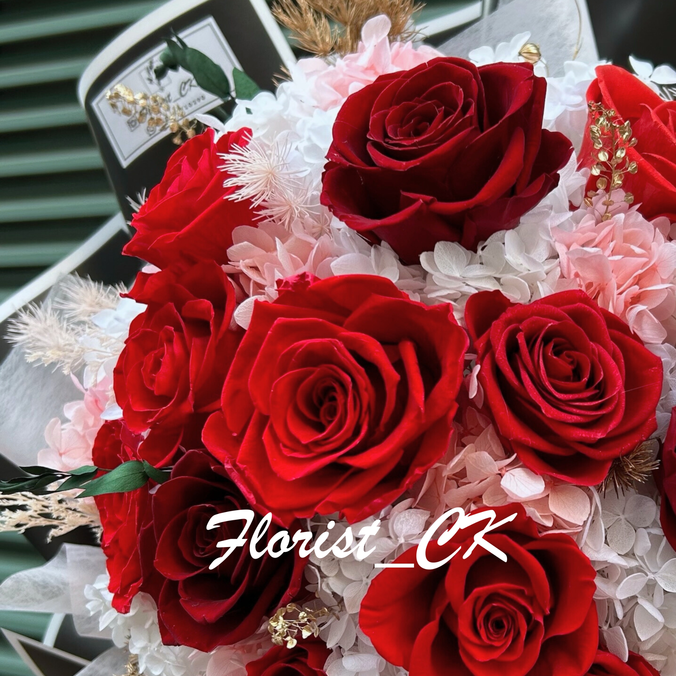 濃郁的紅玫瑰綻放出雋永的浪漫氣息,花瓣層疊如愛的呢喃,溫柔而深情,象徵永恆不變的真愛。以柔白繡球與金色點綴襯托華麗層次,細節間散發著高雅與格調。這款經典永生紅玫瑰花束,將熱誠與溫柔完美融合,不論情人節、紀念日或告白時刻,皆能優雅傳遞最動人的情意。