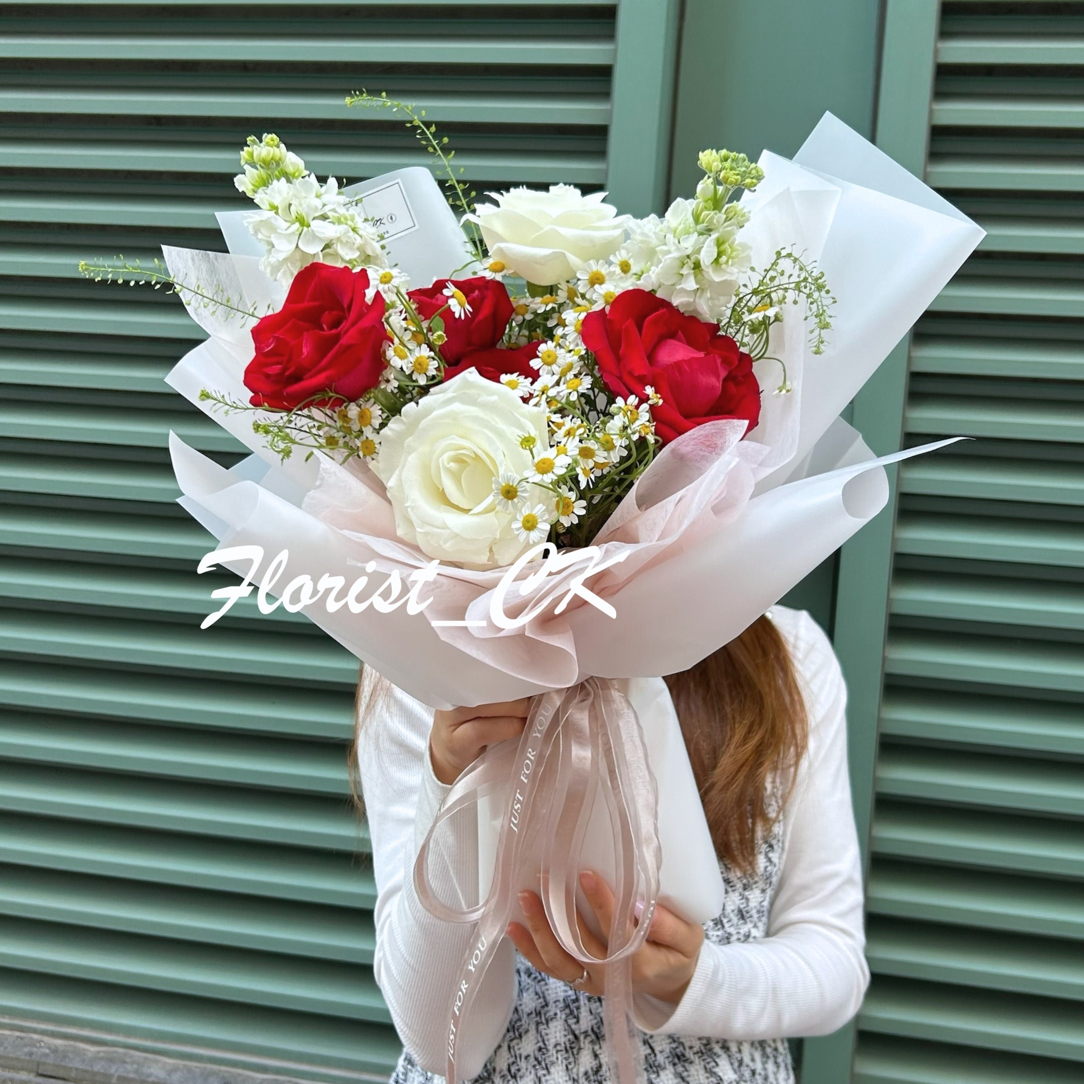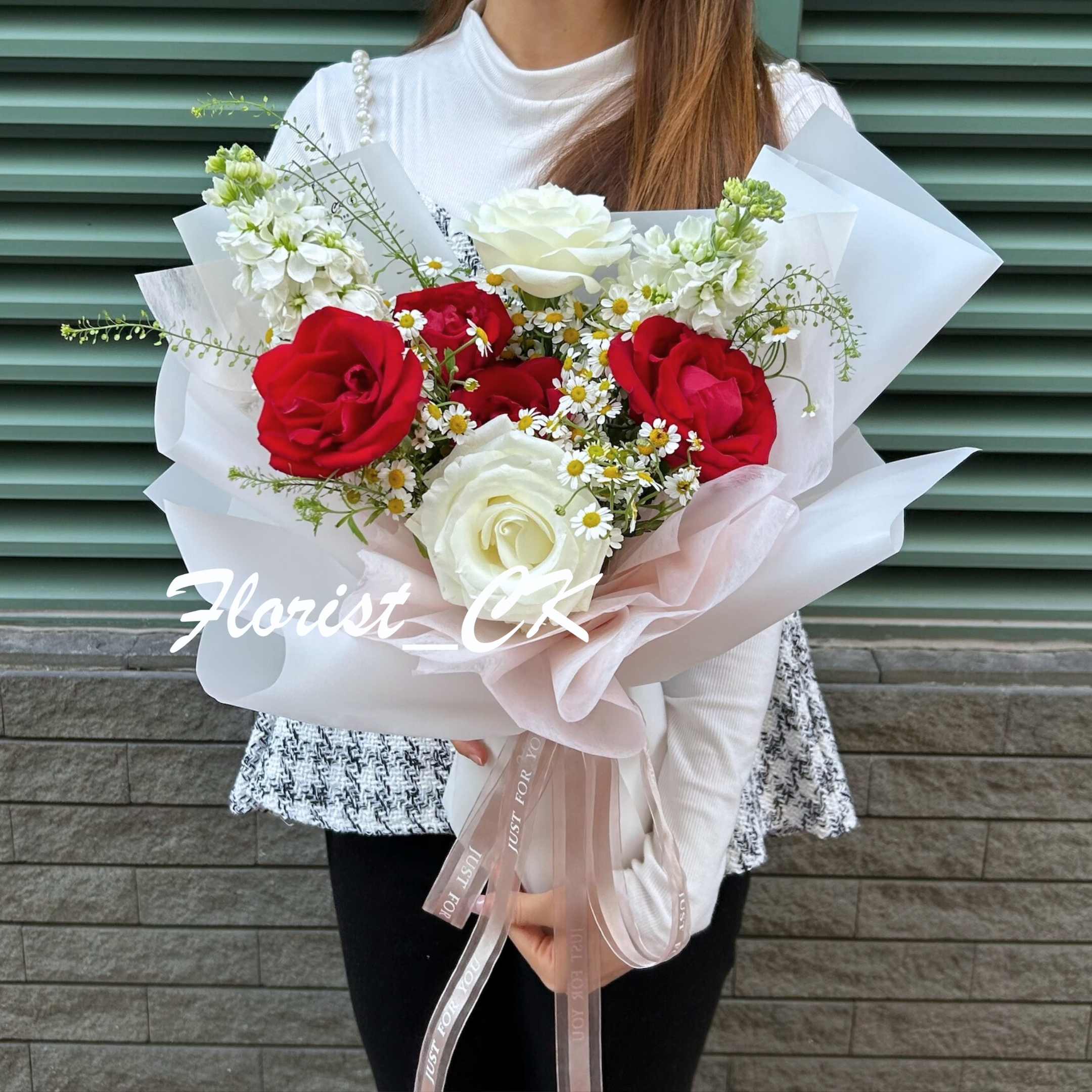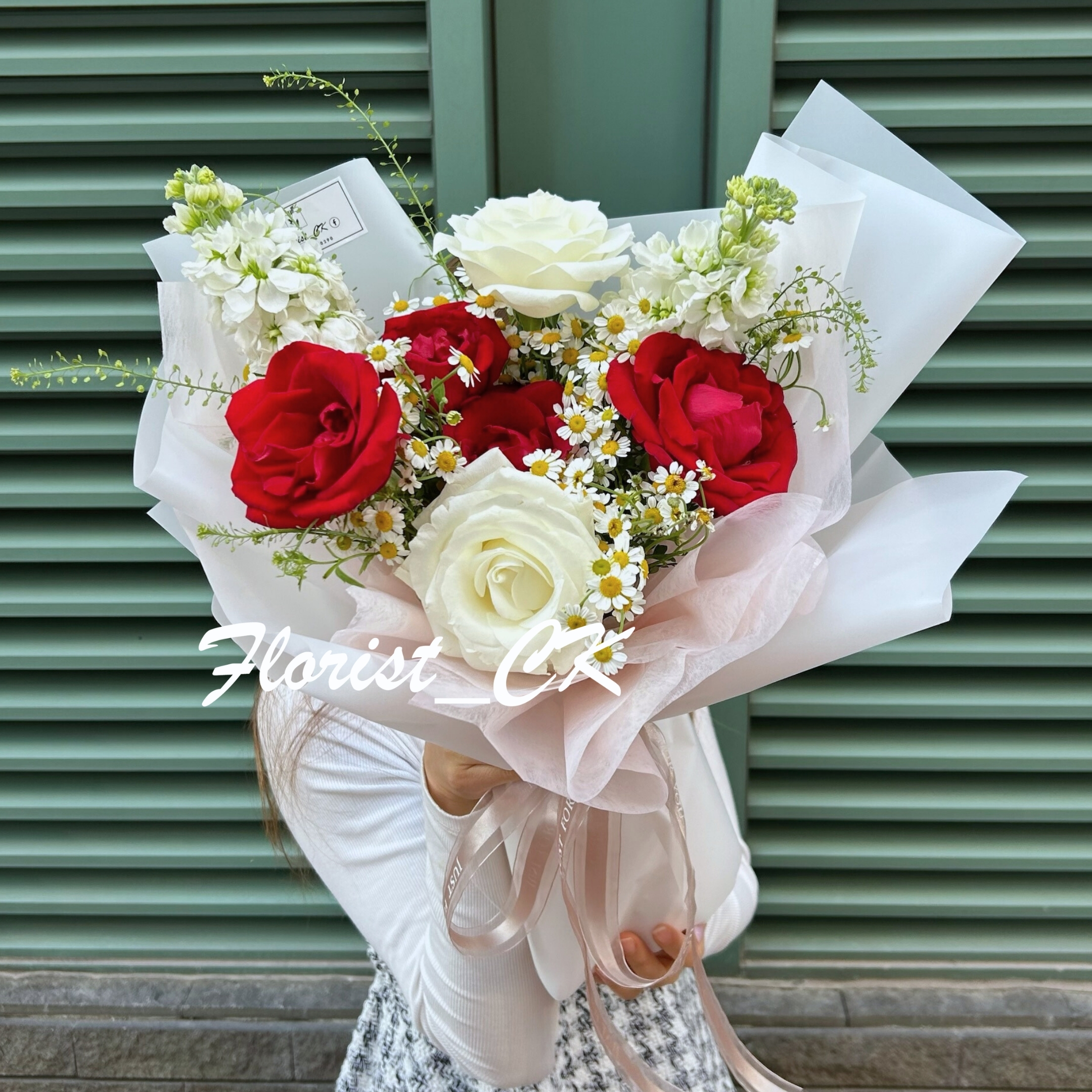 💞 紅與白交織,展現愛情最動人的對話。紅玫瑰象徵熱烈真摯的心意,白玫瑰則訴說細膩純潔的情感。搭配雛菊的柔光點綴,如戀人之間的呢喃,溫柔而不張揚。整體以粉白系包裝呈現,簡約高雅卻充滿儀式感。無論是情人節告白、紀念日驚喜,或是想為摯愛送上浪漫時刻,這束紅白相映的花語,都將成為最動人的情感印記。
