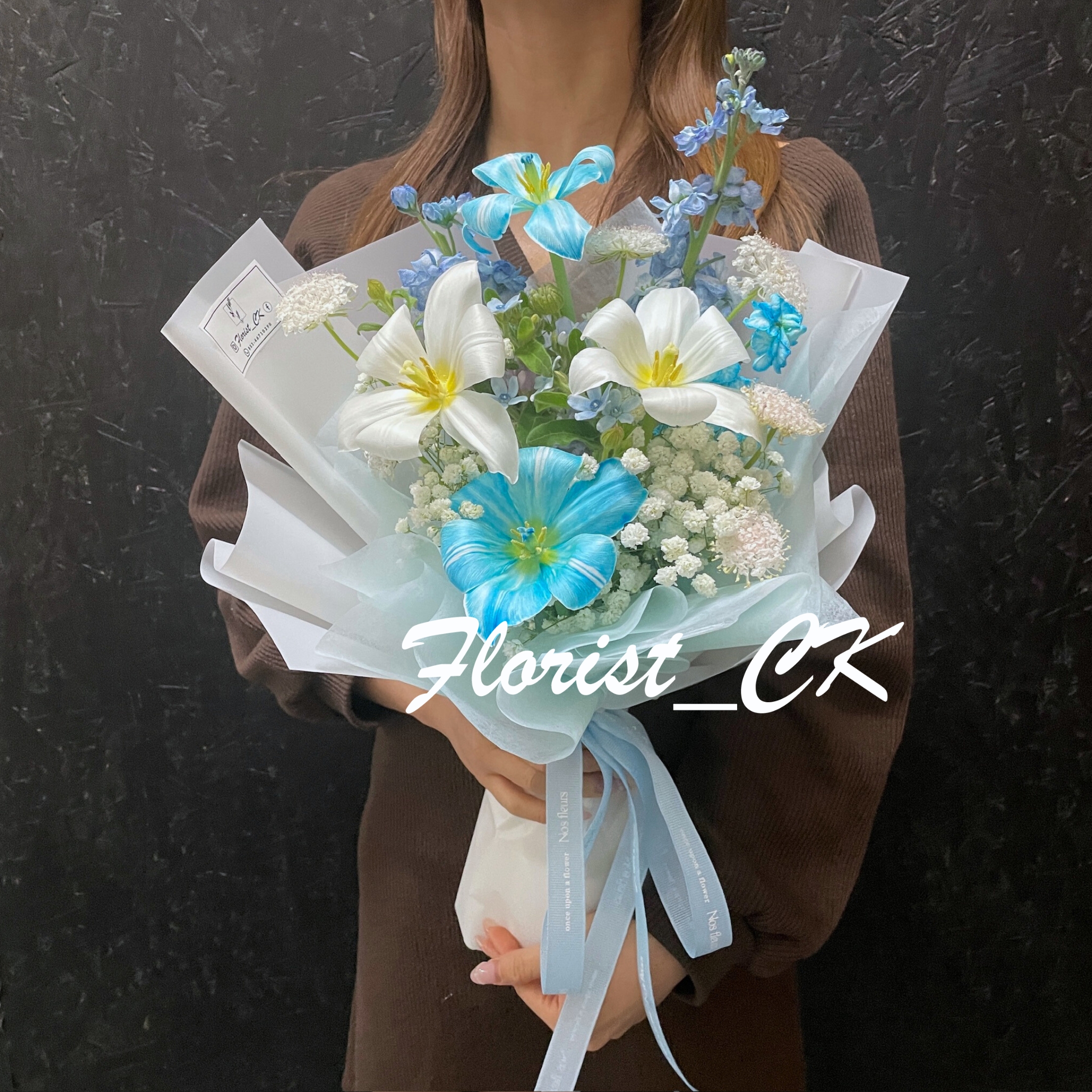 唯有懂得欣賞變化,才懂得珍惜獨一無二的愛。 此款的 鬱金香 由 我們自家手工 染製,💙💙每枝花皆呈現獨一無二的自然層次。由於手工染色的特性,花瓣會隨時間與吸水變化,產生細膩的深淺色差,這正是手工染花的迷人之處。 🌹選用進口鬱金香 為保證品質與新鮮度,每束花均需提前預訂。請於收貨日前至少 5 日下單,以便我們為您預訂最優質的花材。 💡所有圖片只供參考,每束花都是獨一無二的作品,因花材供應、季節和開花狀態而有所差異。我們的花藝師會根據情況調整設計,確保為您提供既精美又符合主題的花束。即便花材略有不同,您收到的花束仍會保持與圖片相近的品質與美感。(完美主義的客人,請慎重考慮才付款預訂) **鮮花價格因季節及旺季(如畢業禮、母親節、情人節、聖誕節、農曆新年前夕)而浮動,最終價格以訂單確認時網站所列為準。敬請客人在落單前預約交收/送貨時間,以減少價格變動可能。如有未確認訂單需調整價格,我們會先與客人溝通。 花束 (畢業、生日、感謝、紀念日等) 💟 帶有字句的心意卡或插牌 (款式隨機送出),挺身花袋 📣 請提前 5 日預訂,如急單請按右下角 Whatsapp 我們查詢 (不接來電) ✅ 如需代寫心意卡請備註,否則我們會為客人選擇合適的卡片。 -------------------------------- 花束附有保濕水袋,無需拆包可存放約 2-3 天。若拆包放入花瓶,請每天換水並斜剪花莖,可延長花期至 4-7 天。如欲了解更多如何護理鮮花花束的資訊,請查閱下面花朵保存 Tips 部份。