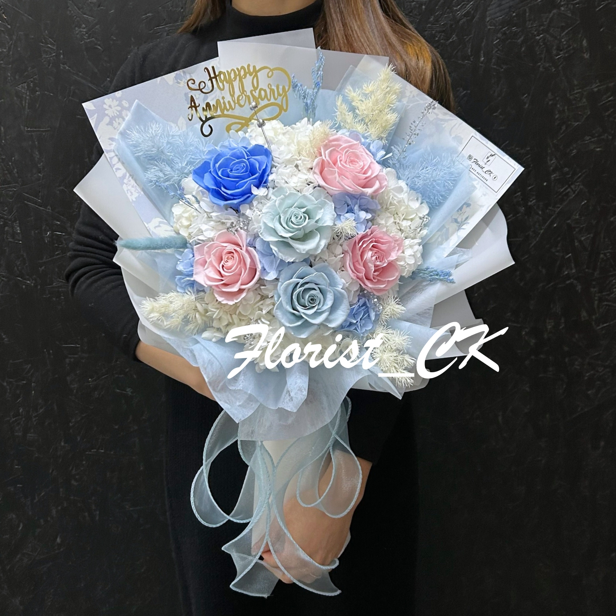 🩵🩷 以柔和的粉藍色調交織出純淨與浪漫,如月光灑落於晨霧,溫柔而不張揚。藍玫瑰象徵深邃而唯一的愛,粉玫瑰代表細膩的溫情與甜蜜的誓言。每一瓣花都經過細緻的永生工藝,留住盛放的剎那,彷彿時間為愛而靜止,流淌著優雅與思念,最適合於情人節、紀念日,或送給那位讓你心動的她。