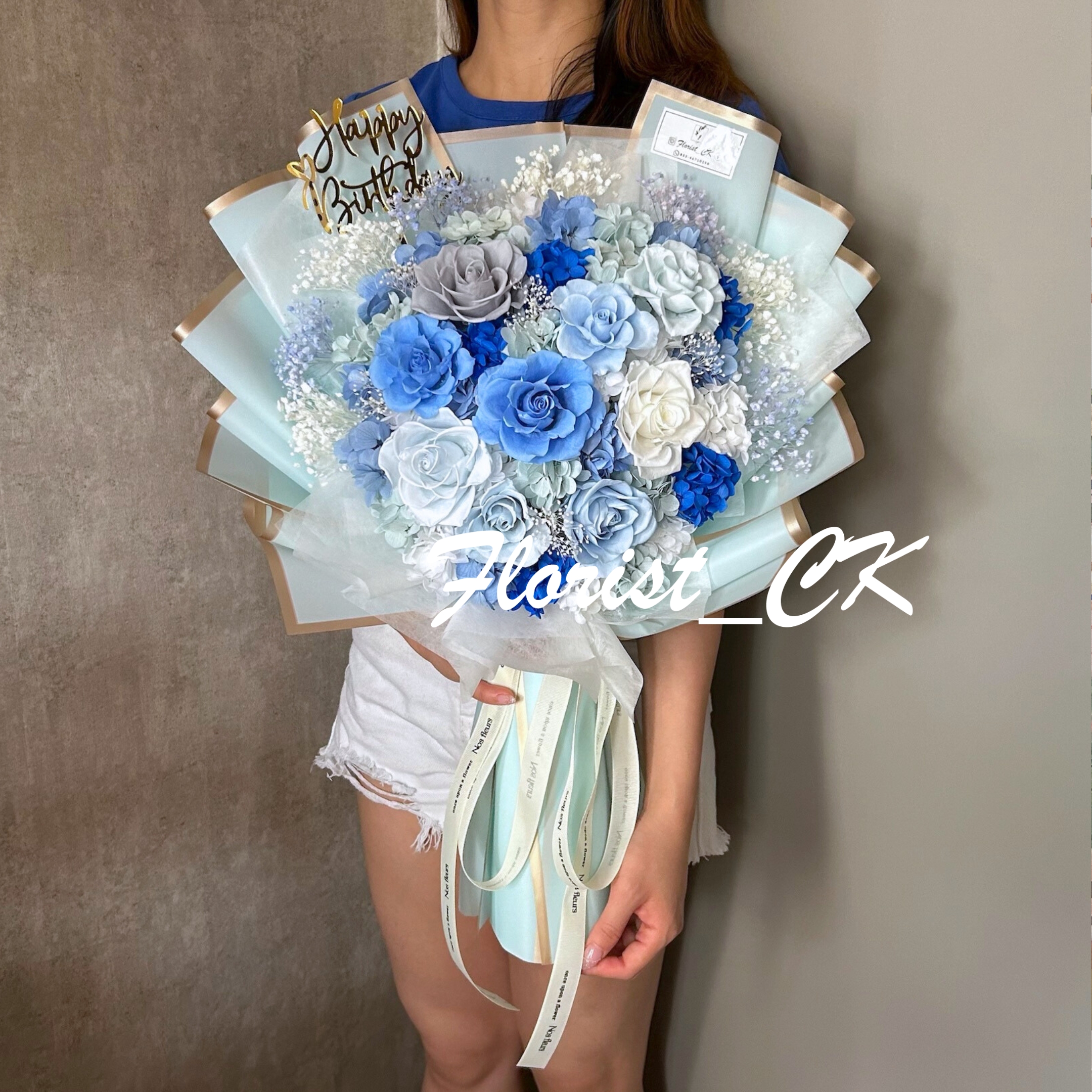 Into The Blue 滿天星版|永生玫瑰花束 (3 朵 / 6 朵 / 9 朵 / 12 朵;預訂款)
