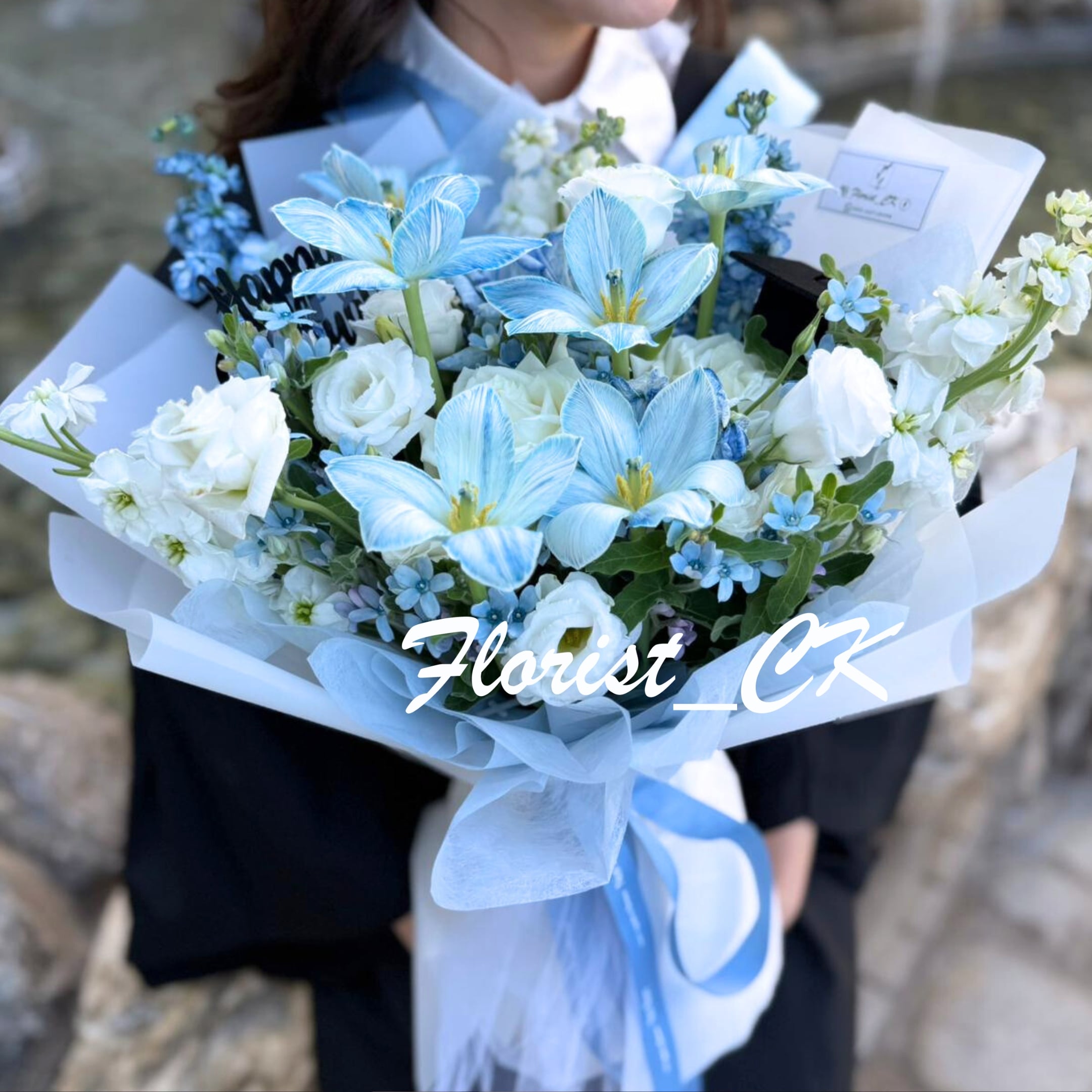 【💙🤍實物更美】Celestial Whisper|厄瓜多爾進口玫瑰 & 進口鬱金香|鬱金香玫瑰鮮花花束 (預訂款)